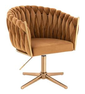 HR750CROSS Mézbarna Modern Velúr Szék Arany lábbal